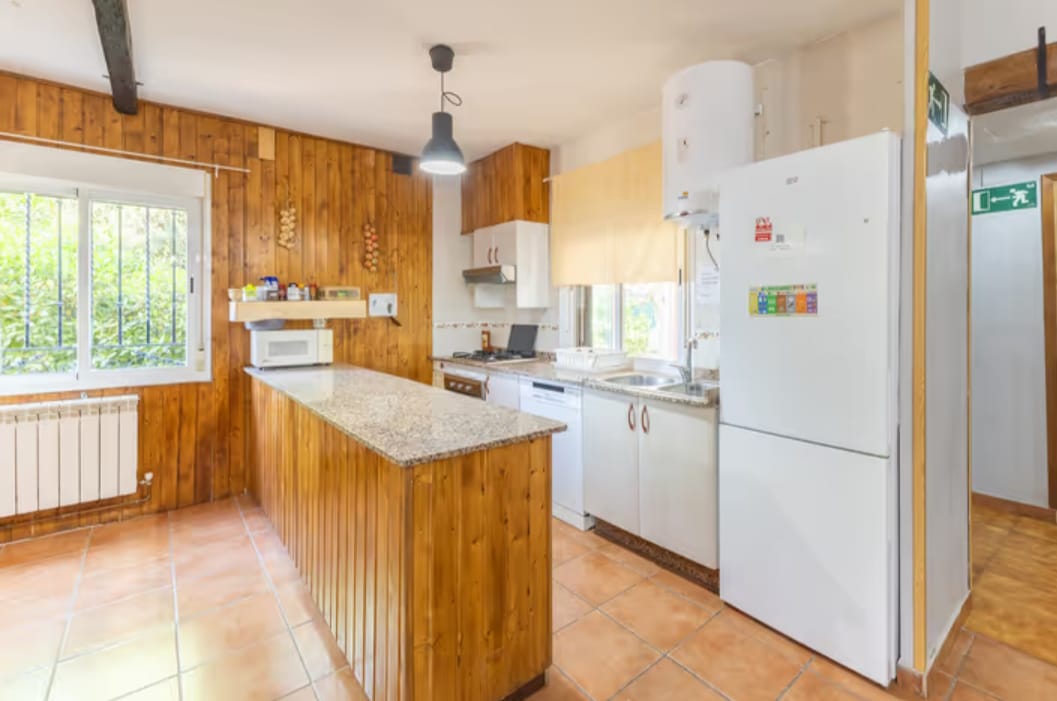 Cocina Totalmente Equipada: Preparada para “batallones”. Menaje completo, electrodomésticos grandes y todo lo necesario para preparar esas comidas que se alargan durante horas.